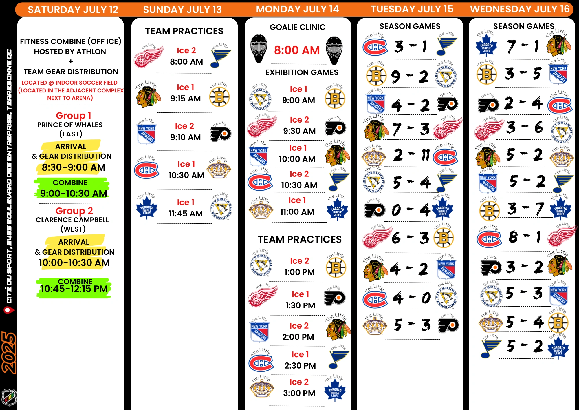 Le tournois de Fresh Ice Hockey n’est ni commandité ni affilié à la Ligue nationale de hockey ou à l’un de ses membres. Toute utilisation de noms commerciaux ou de marques est strictement à des fins d’identification et n’implique aucune association avec le détenteur de la marque.