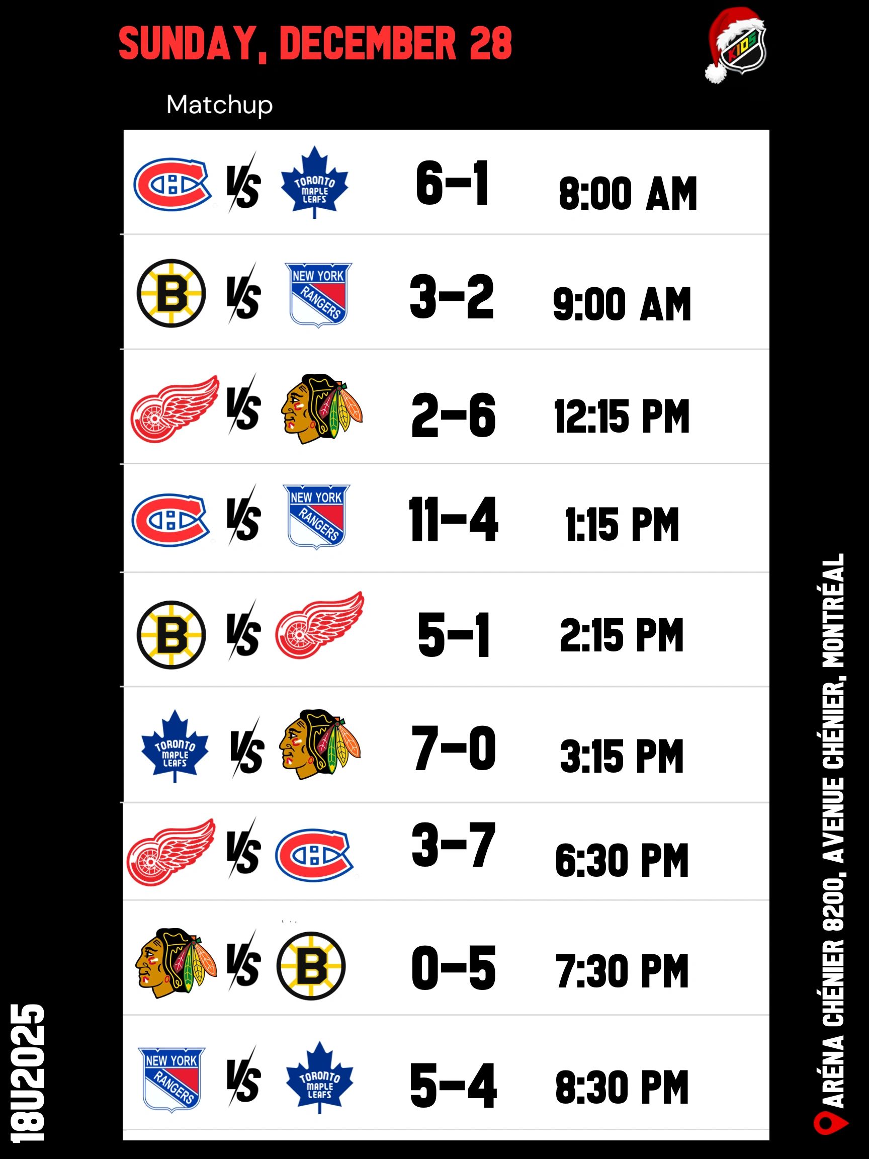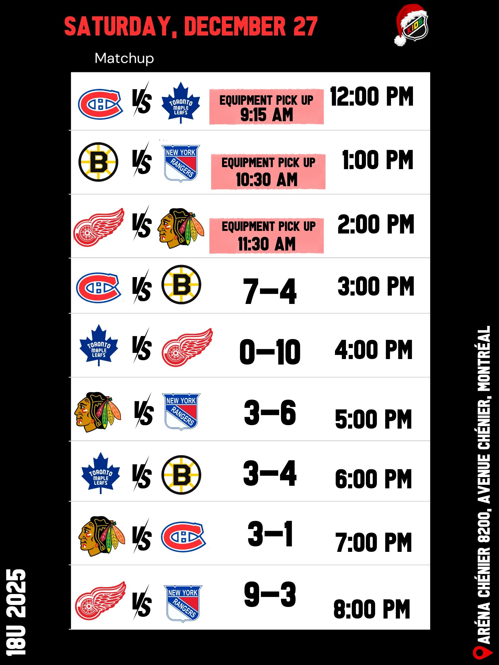 Le tournoi Original Six 18U aura lieu à l’Aréna Chénier, 8200 Av. Chénier, Anjou, QC H1K 5E9.